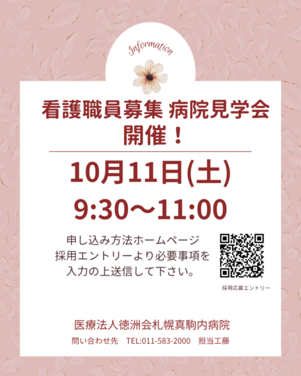 予約方法:採用エントリー又はお電話(011-583-2000) 担当:工藤